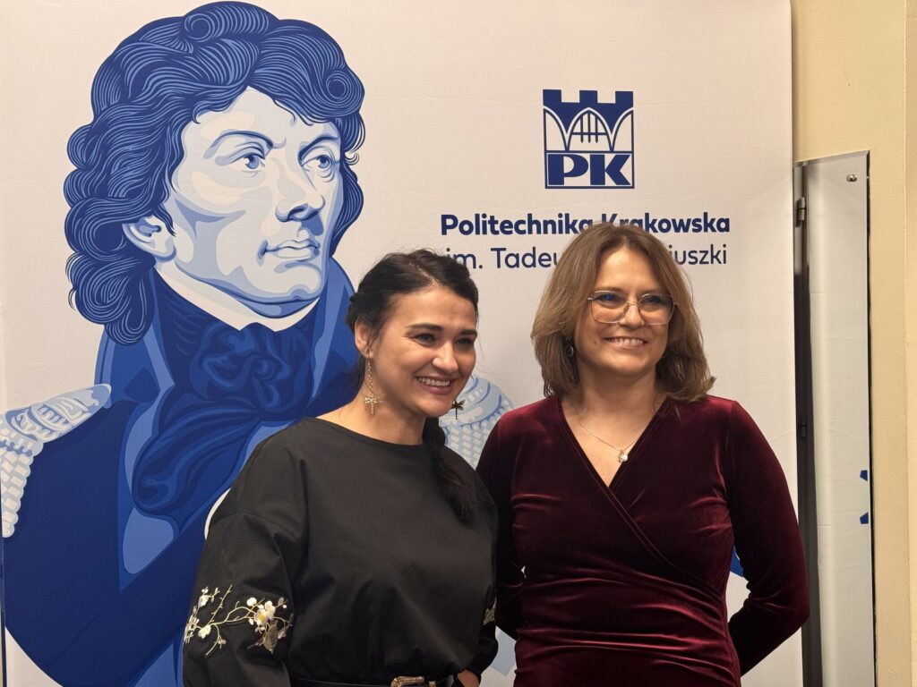 Dyrektor Studium Języków Obcych PK Pani mgr Magdalena Cora i Prorektor ds. kształcenia i współpracy z zagranicą Pani dr hab. inż. Katarzyna Bizon, prof. PK